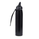 Para manter-se hidratado é mais prático ter sempre por perto uma garrafa, se ela for personalizada, fica muito melhor. Esta garrafa de aço inoxidável é muito mais resistente, pois tem parede dupla e mantém o líquido fresquinho, tem design ousado, na cor preta com tampa orelha de cachorrinho.