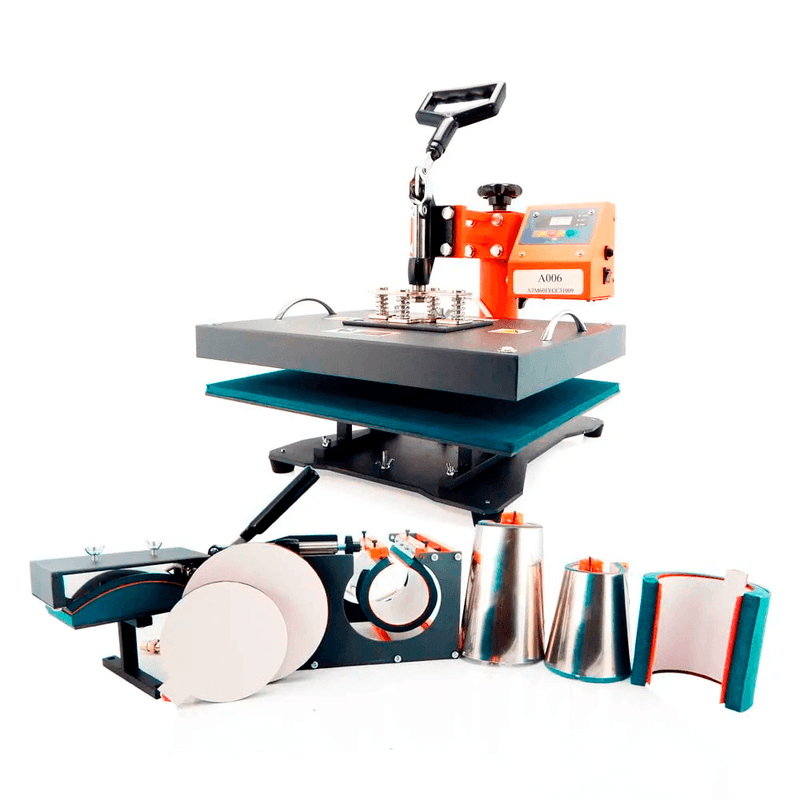 A Prensa Térmica 8 em 1 Laranja (Base 38x29) – 110v é uma estação completa e versátil para personalização profissional por sublimação, permitindo a aplicação de estampas em uma ampla variedade de produtos. Seu conjunto inclui acessórios para canecas, bonés, pratos, squeezes e superfícies planas, oferecendo máxima produtividade e precisão em um único equipamento.