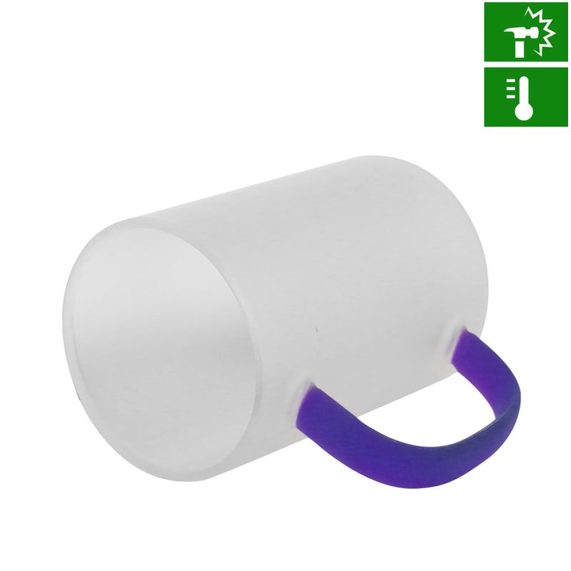 Caneca de Vidro Borossilicato Jateado com Alça Azul Escura - 300mlInformação sobre o vidro borossilicato.