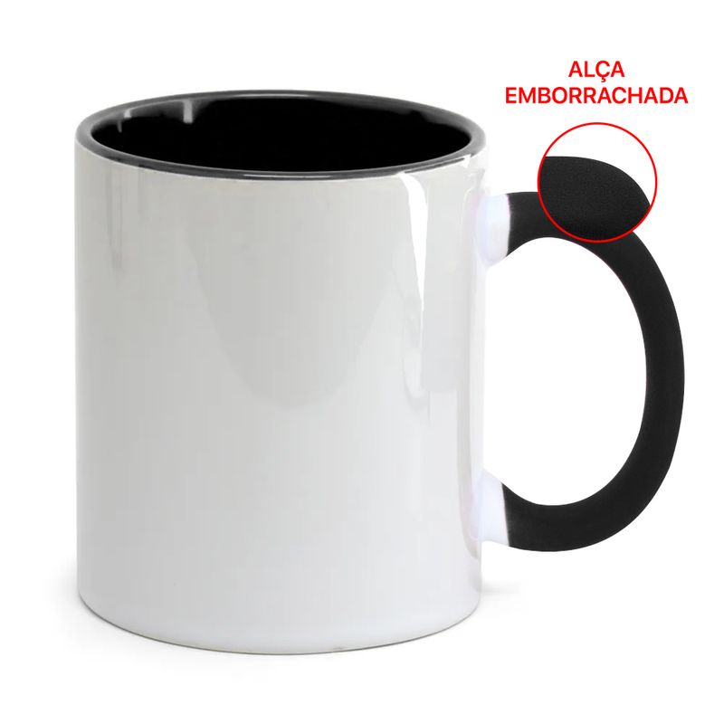 Caneca para Sublimação de Cerâmica Branca com Alça Soft e Interior Preta