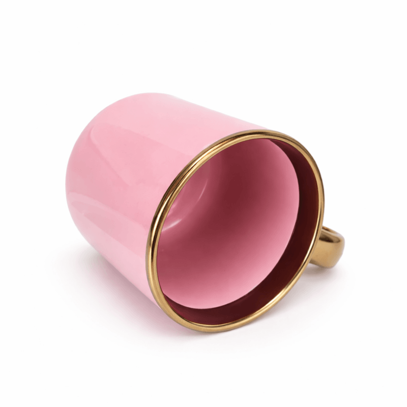 Caneca Imperial Cerâmica Rosa para Sublimação com Alça e Borda Cromada Ouro – 400ml
