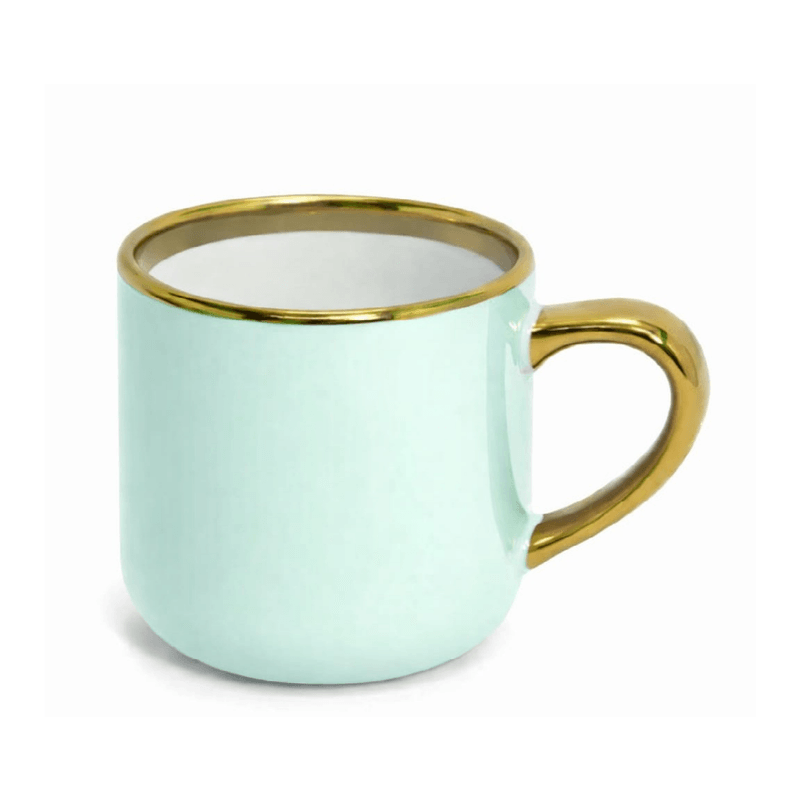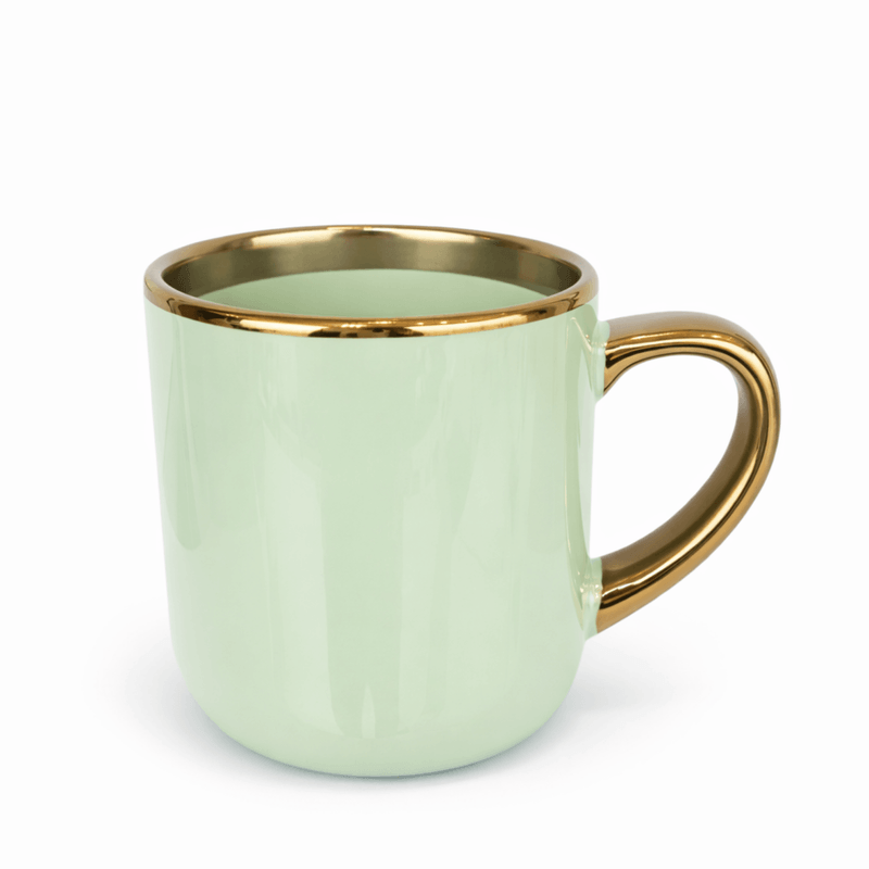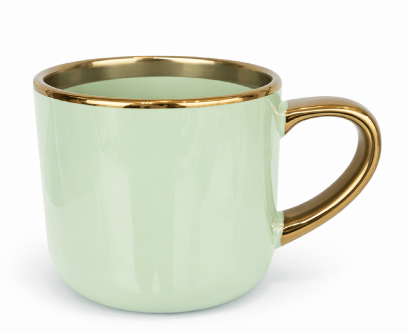 Caneca Imperial Cerâmica Verde para Sublimação com Alça e Borda Cromada Ouro – 400ml