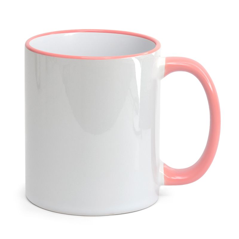Caneca para Sublimação de Cerâmica Branca com Alça e Borda Rosa