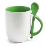 Caneca de Cerâmica Branca com Alça, Interior e Colher Verde – 325ml | Estilo e Personalização