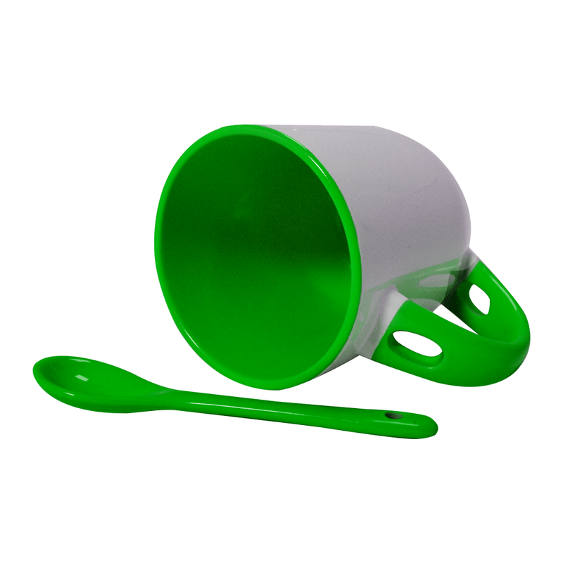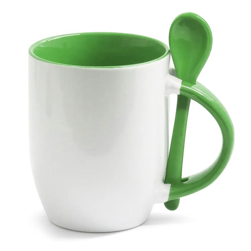 A Caneca para Sublimação de Cerâmica Branca com Alça, Interior e Colher Verde é ideal para quem busca um produto funcional e criativo. Feita em cerâmica resinada sublimática, oferece estampas com cores vivas, ótima definição e alta durabilidade.