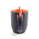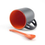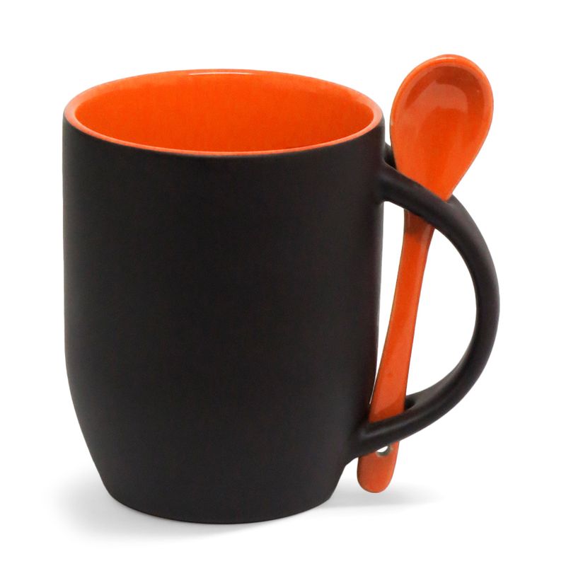 O interior laranja adiciona um toque de estilo, enquanto a colher integrada facilita a mistura de suas bebidas favoritas. Perfeita para personalização com fotos, logotipos, desenhos ou mensagens, esta caneca é ideal para uso diário, seja em casa ou no escritório, ou como um presente especial e exclusivo.