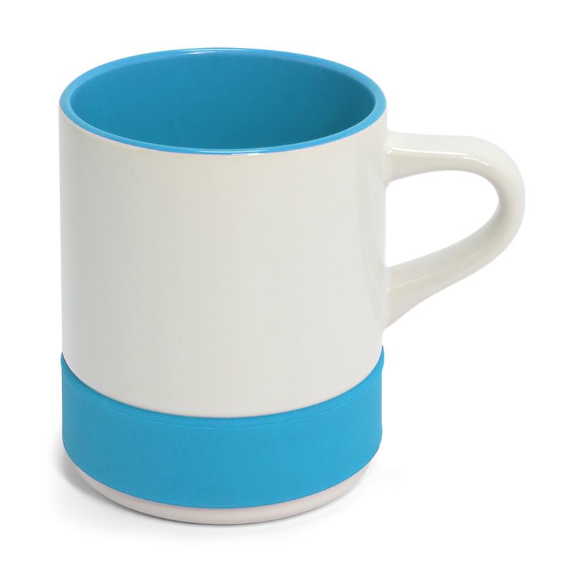 Caneca de Cerâmica Branca com Interior e Cinta em Silicone Azul Claro – 350ml