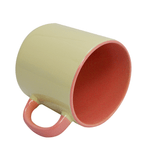• Material: Cerâmica branca com alça rosa bebê em formato meia lua