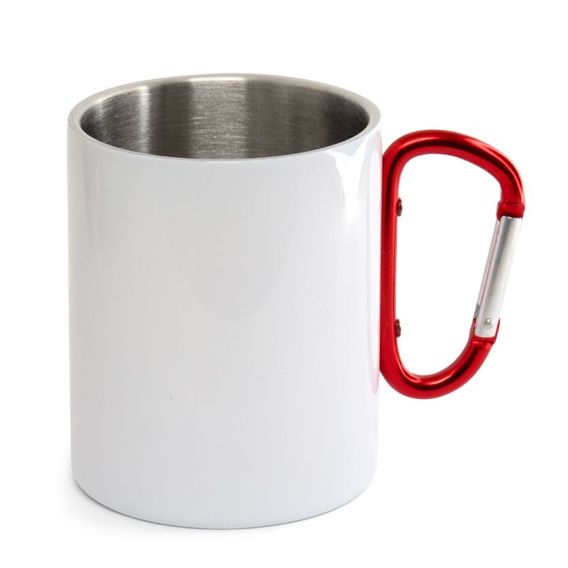 A superfície branca é ideal para sublimação, permitindo personalizar com imagens, logos ou frases inspiradoras. A alça mosquetão não só adiciona um toque de estilo, mas também facilita o transporte ao prender a caneca em mochilas ou cintos. Resistente e versátil, é a companheira ideal para caminhadas, camping ou uso diário.