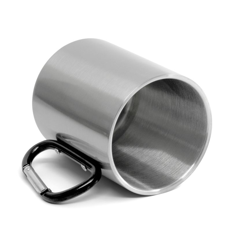 Prepare-se para suas próximas aventuras com a Caneca de Aço Inox para Sublimação de 300ml, equipada com uma alça mosquetão para fácil transporte.