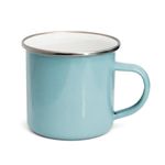 Caneca de Metal Azul Bebê com Borda Prata e Interior Branco - 325ml