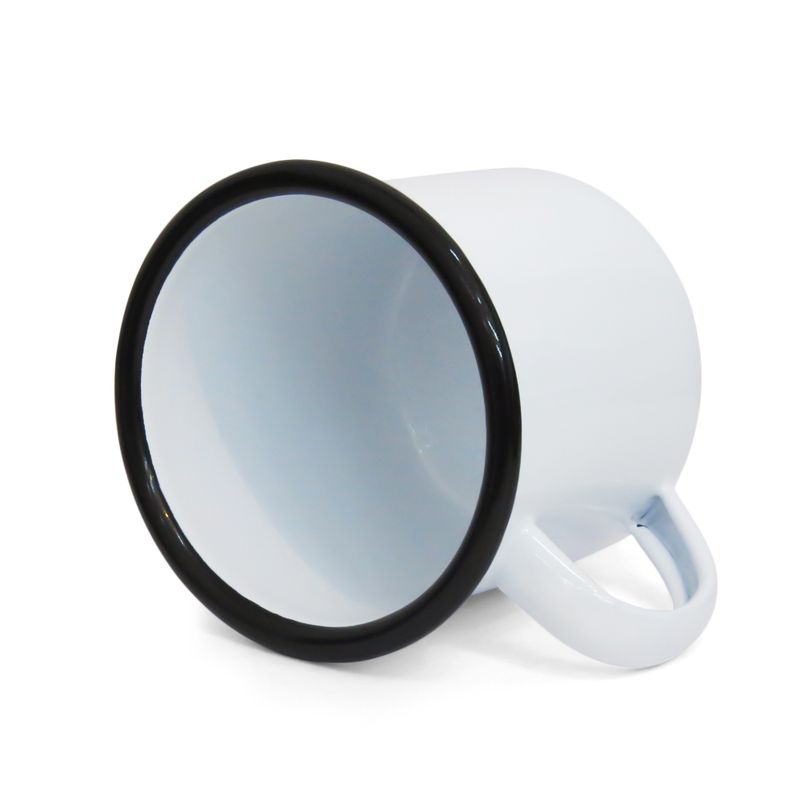 Confeccionada em metal resistente branco, esta caneca inspira o melhor do estilo clássico e despojado, ideal para brindes sofisticados e vintage. Ela possui a borda preta e tem 325ml muito lindinha.