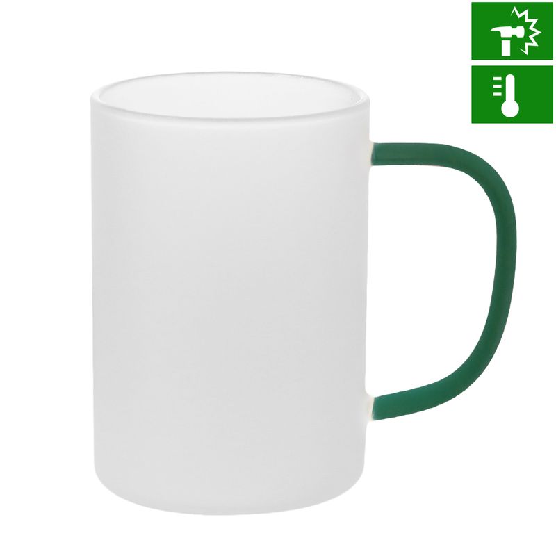 Caneca de Vidro Borossilicato Jateado com Alça Verde - 300ml