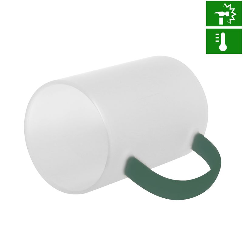 Caneca de Vidro Borossilicato Jateado com Alça Verde - 300mlInformação sobre o vidro borossilicato.