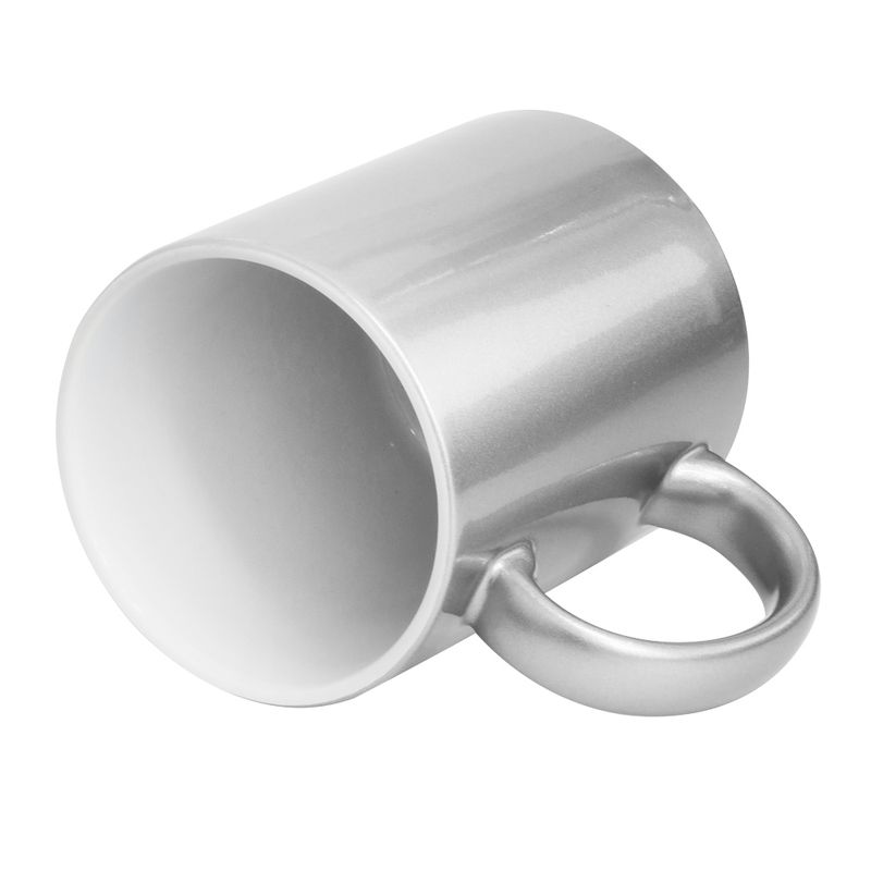 A Caneca Metalizada Nacional Prata – 325ml é ideal para personalizações que buscam um visual elegante. Produzida em cerâmica de alta qualidade com revestimento metalizado, oferece excelente aderência para aplicação de artes, logotipos e mensagens através de sublimação térmica.
