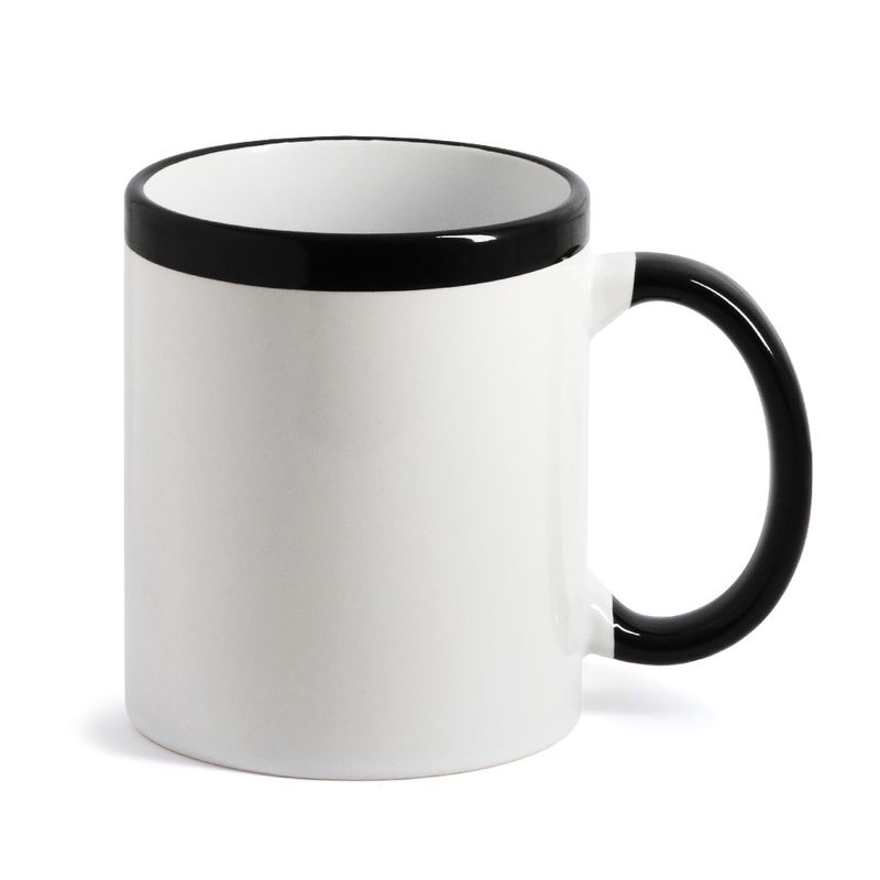 Caneca para Sublimação de Cerâmica Branca com Alça e Colarinho Preta - 1 unidadeTraga alegria e personalidade aos seus trabalhos com esta linda caneca que se destaca dos seus concorrentes.