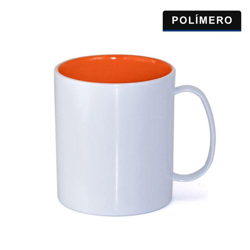 Caneca para Sublimação de Plástico Branco com interior Laranja - SOCD