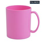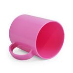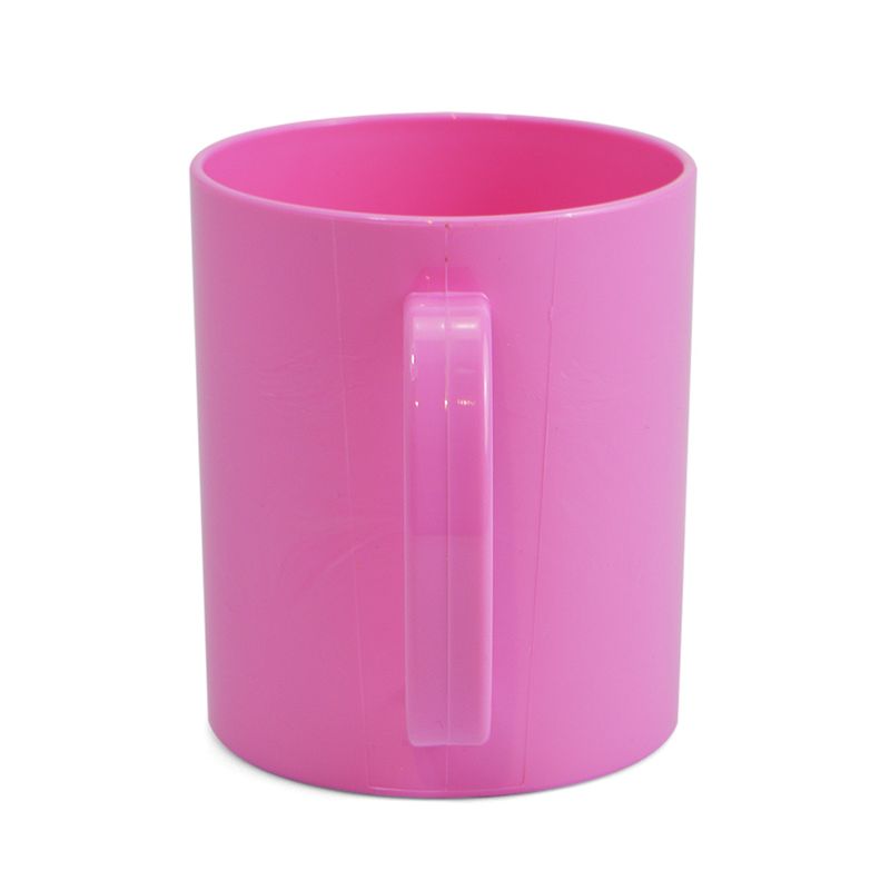 Produzida em plástico resistente, ela é lisa e muito parecida com a caneca de cerâmica, ideal para crianças.