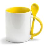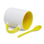 Caneca Reta para Sublimação de Cerâmica Branca com Alça e Interior, Colher Amarela - 325ml