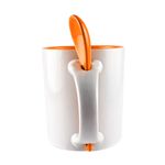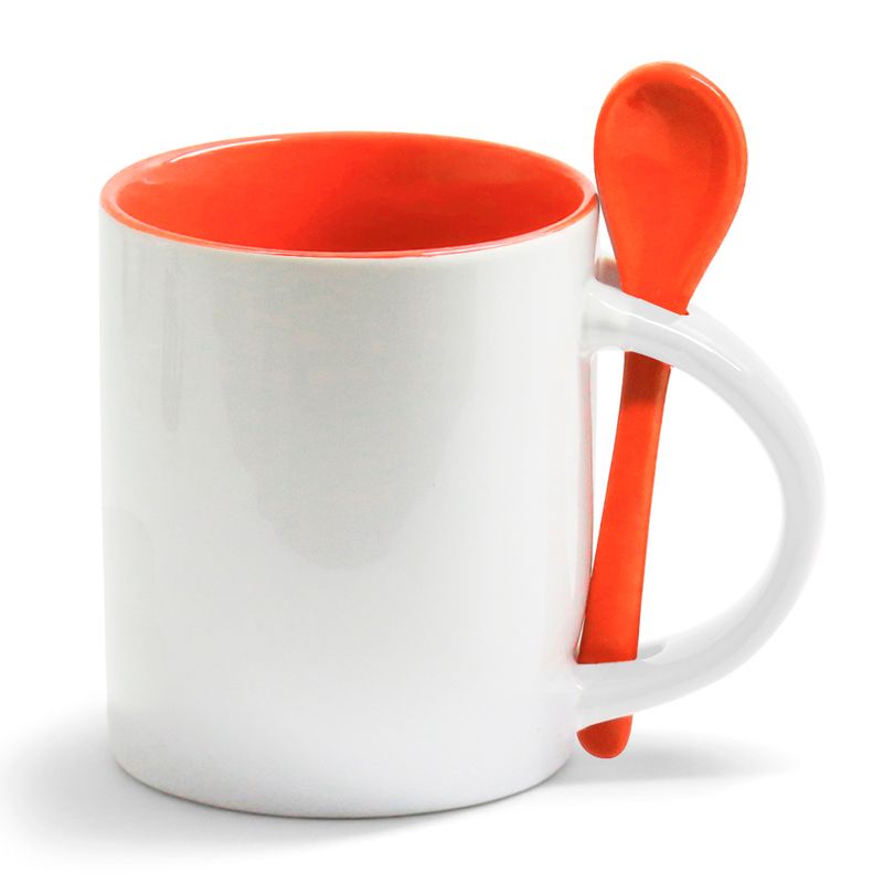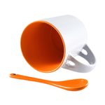 Caneca Reta para Sublimação de Cerâmica Branca com Interior e Colher Laranja - 325ml