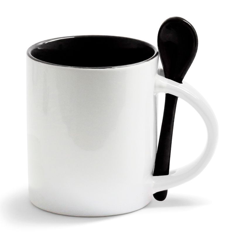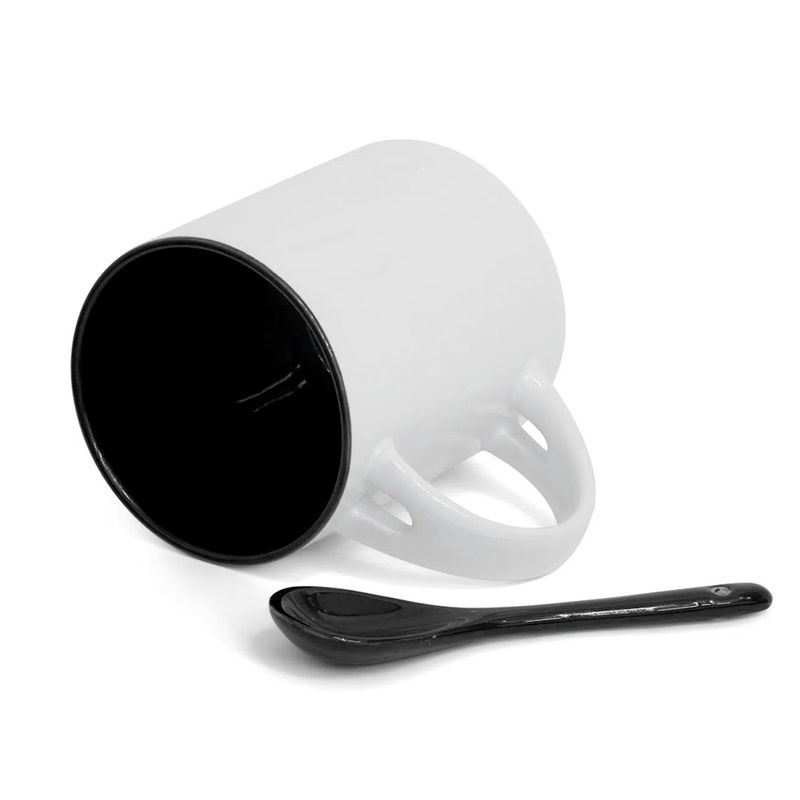 Caneca Reta para Sublimação de Cerâmica Branca com Interior e Colher Preta - 325ml