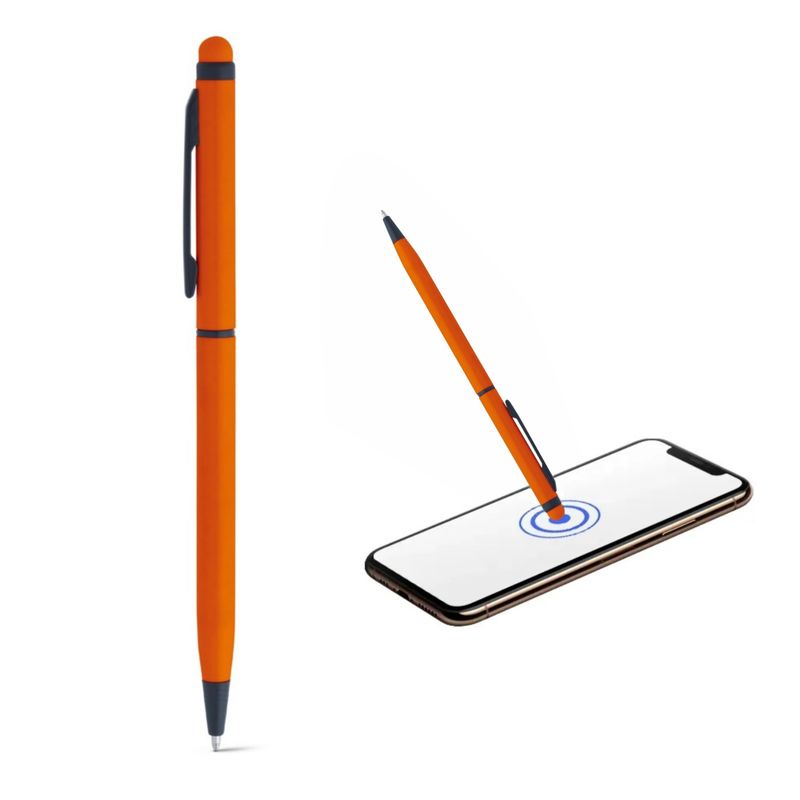 A Caneta Esferográfica em Alumínio com Ponteira Touch - Laranja é uma escolha moderna e funcional para quem valoriza estilo e praticidade. Seu corpo em alumínio na cor laranja metálico combina leveza, durabilidade e um visual vibrante, ideal para uso corporativo, profissional ou como brinde personalizado.