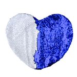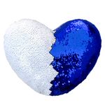 Capa de Almofada de Lantejoulas Dupla Face Coração Azul Escuro e Branca - 39x44cm