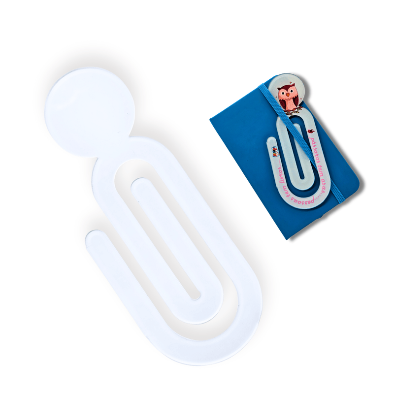 Clip Marca Página Plus em Acrílico Cristal Retroverso – 5x13,5cm | Personalizável por Sublimação