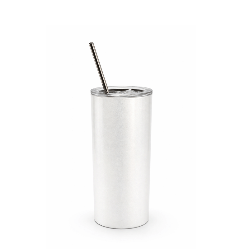 Copo Térmico Inox Branco Perolado para Sublimação com Tampa em Acrílico – 450ml
