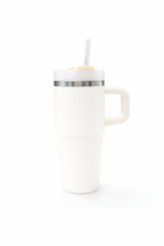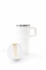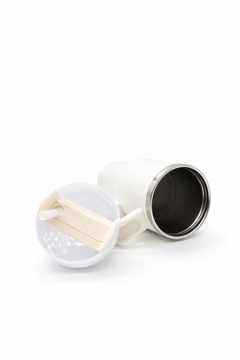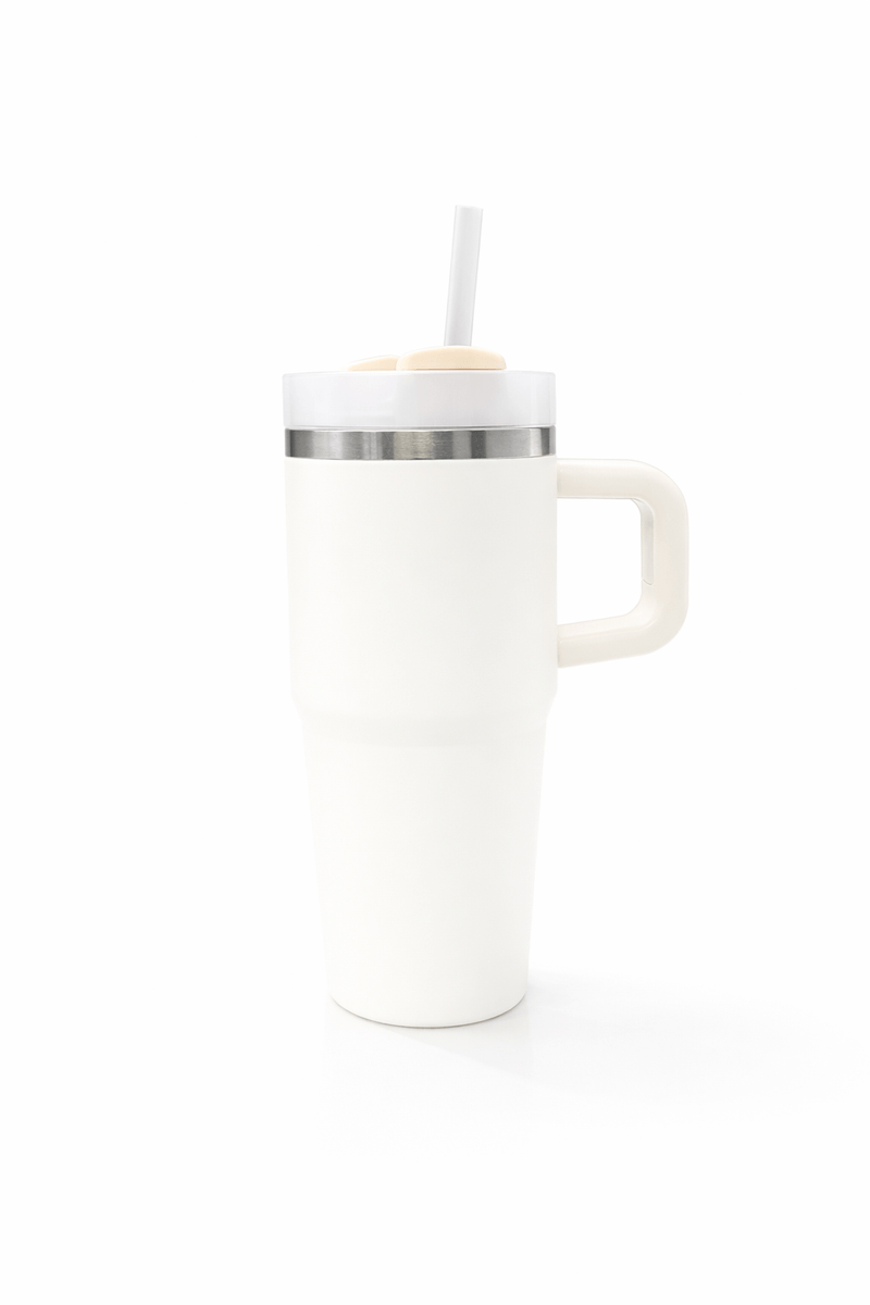 Copo Térmico para DTF-UV em Aço Inox Branco Fosco com Tampa em Acrílico e Canudo – 600ml