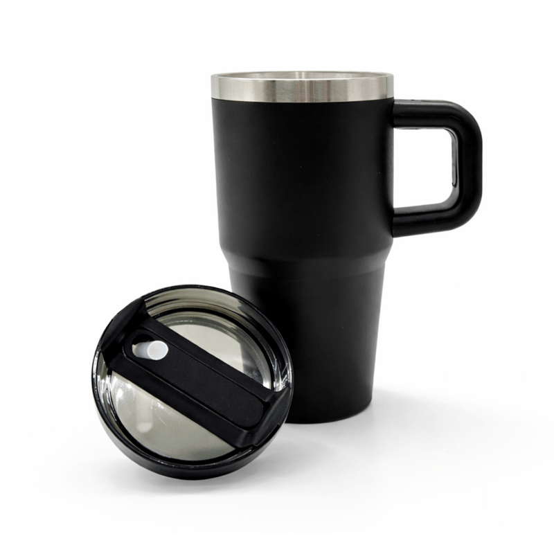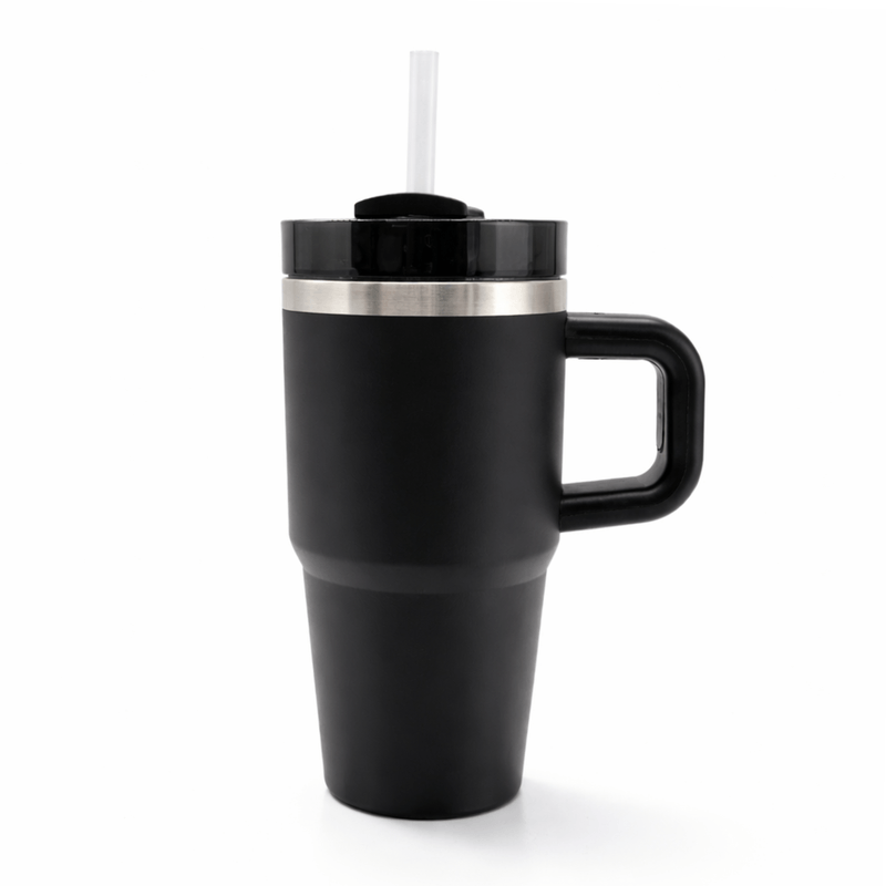 Copo Térmico para DTF-UV em Aço Inox Preto Fosco com Tampa em Acrílico e Canudo – 600ml