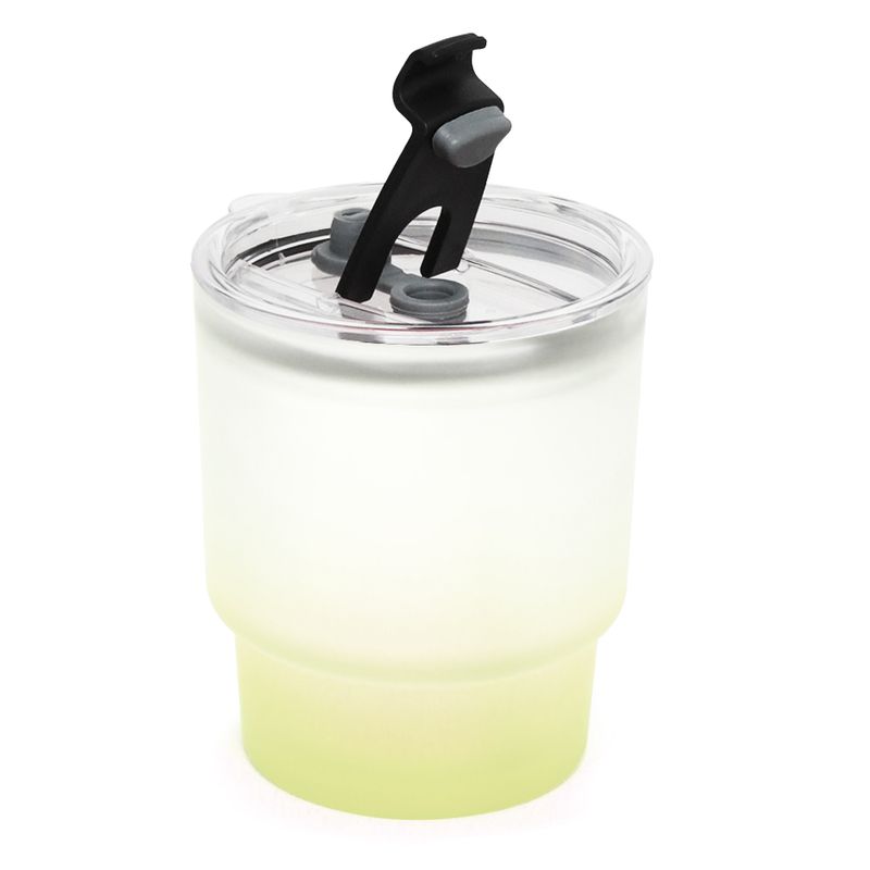 Copo de Vidro Jateado Amarelo Palha para Sublimação com Tampa de Acrílico e Canudo de Vidro - 400ml