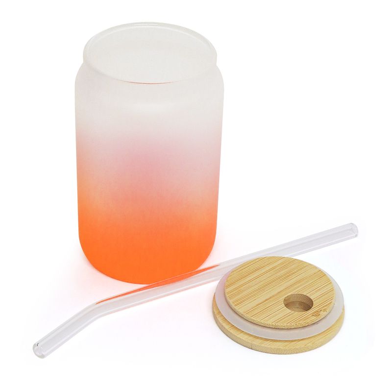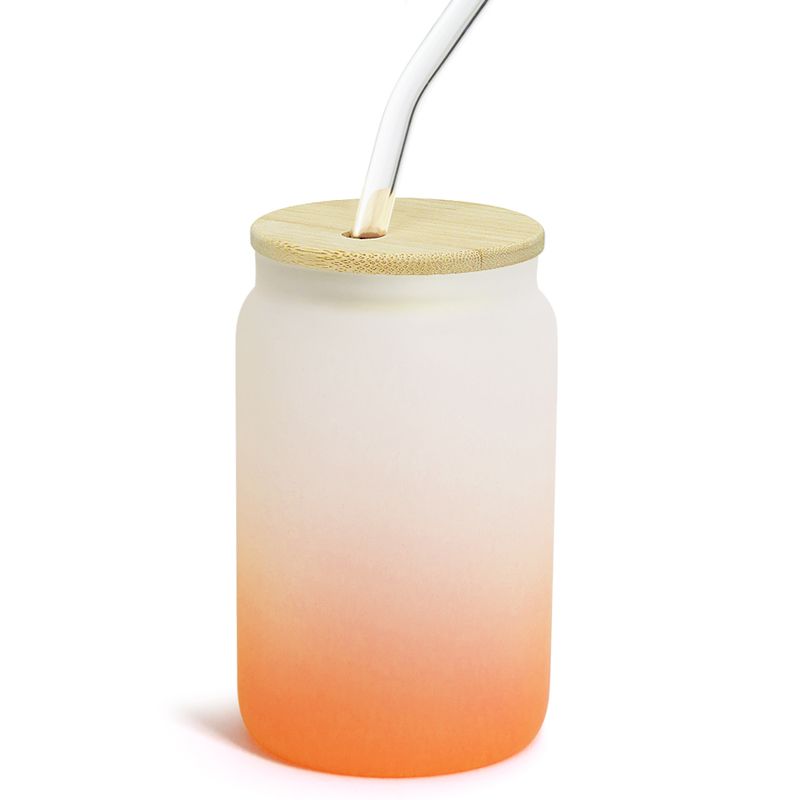 Copo de Vidro Jateado Laranja para Sublimação com Tampa de Bambu e Canudo de Vidro - 400mlÉ um produto diferenciado e divertido com grande versatilidade.