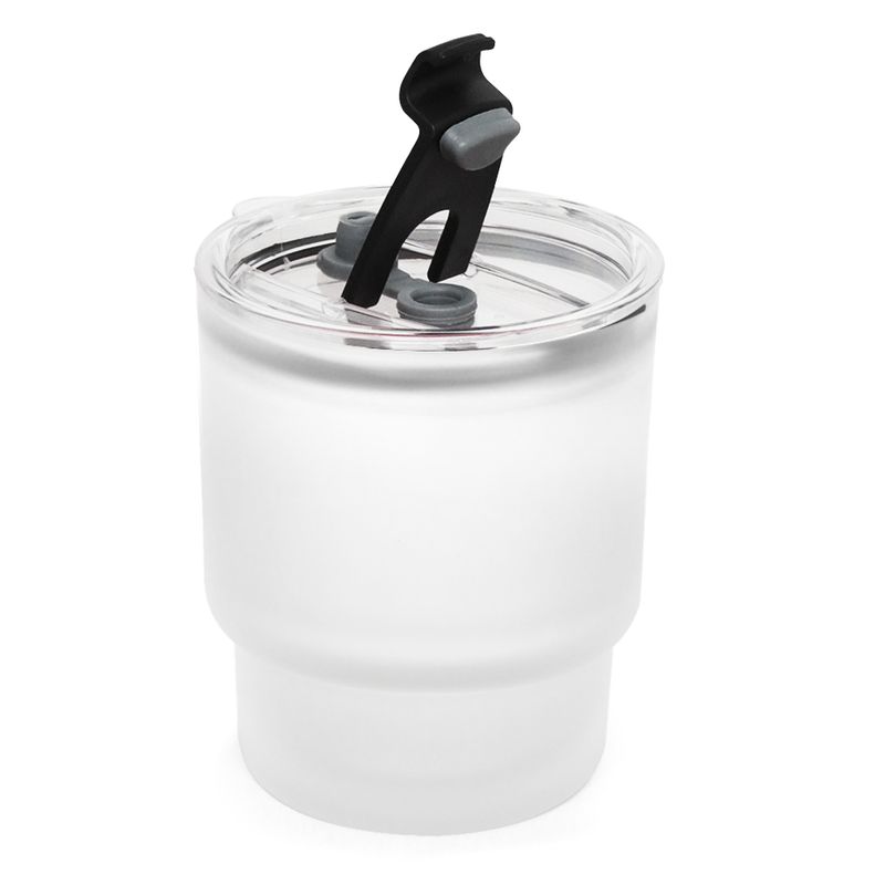 Copo de Vidro Jateado para Sublimação com Tampa de Acrílico e Canudo de Vidro - 400ml