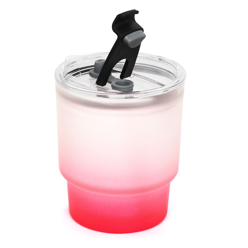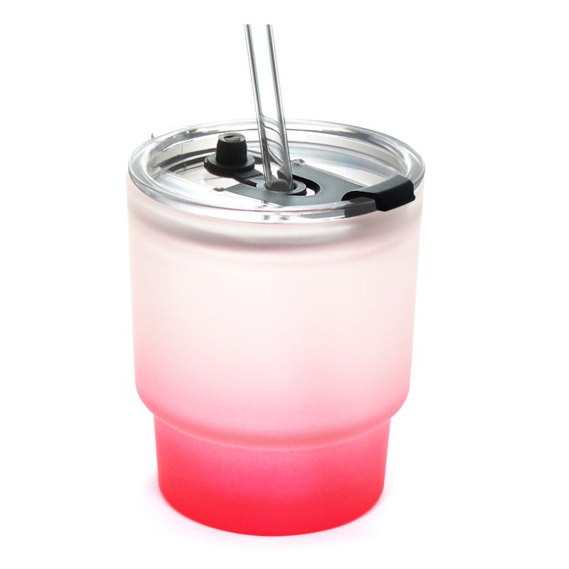 Copo de Vidro Jateado Vermelho para Sublimação com Tampa de Acrílico e Canudo de Vidro - 400ml