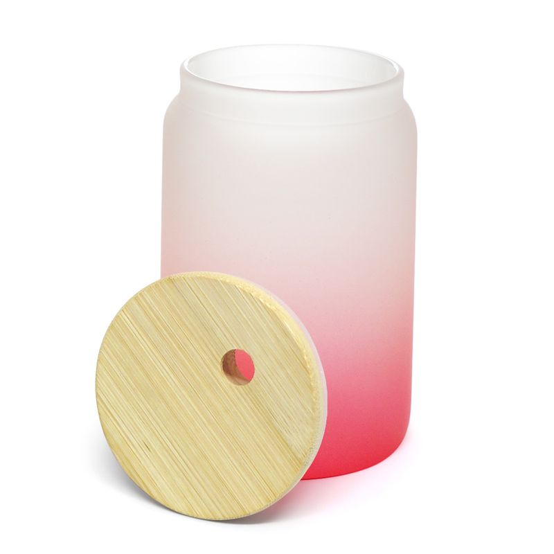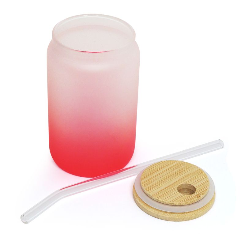 Copo de Vidro Jateado Vermelho para Sublimação com Tampa de Bambu e Canudo de Vidro - 400mlÉ um produto diferenciado e divertido com grande versatilidade.