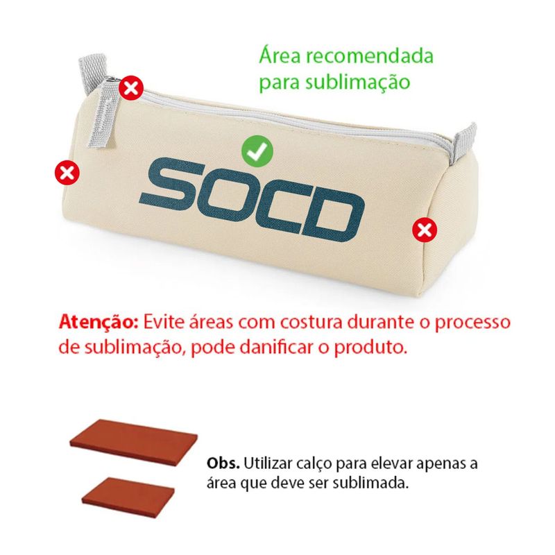 Este produto só é indicado para quem tem Prensa Plana com Base Pequena, ou Mini Prensa Portátil Localizada, pois se trata de um Produto com muitas dobras de costura e Zíper que não podem ser colocados dentro da prensa. Existe a possibilidade de se fazer numa prensa maior, porem usando alguma espécie de Causo de Borracha, Pano, etc., por dentro produto, mas seria um processo de Sublimação bem mais complexo e sem garantias de Sucesso no resultado final.