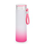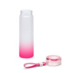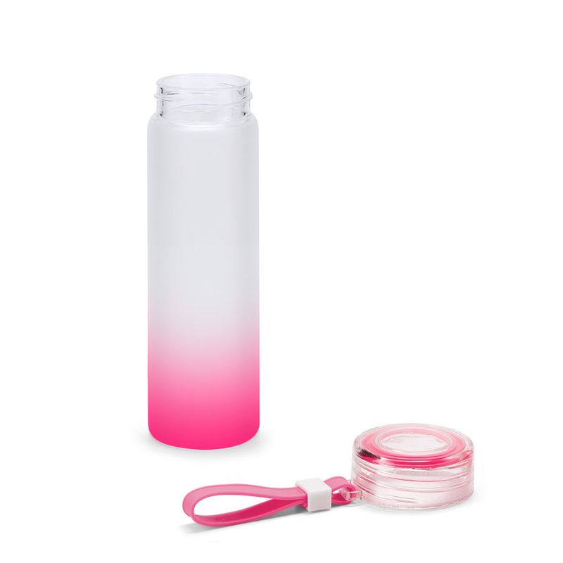 Garrafa de Vidro Jateado Degrade Rosa com Tampa Acrílica e Fita de Silicone - 400ml