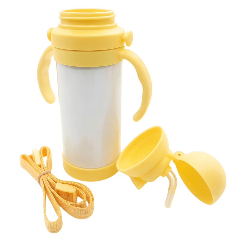 Garrafa Térmica para Sublimação em Aço Inox com Pegador Infantil e Alça Corda Amarelo - 330ml