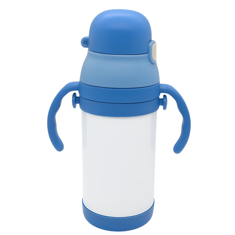 Garrafa Térmica para Sublimação em Aço Inox com Pegador Infantil e Alça Corda Azul - 330ml