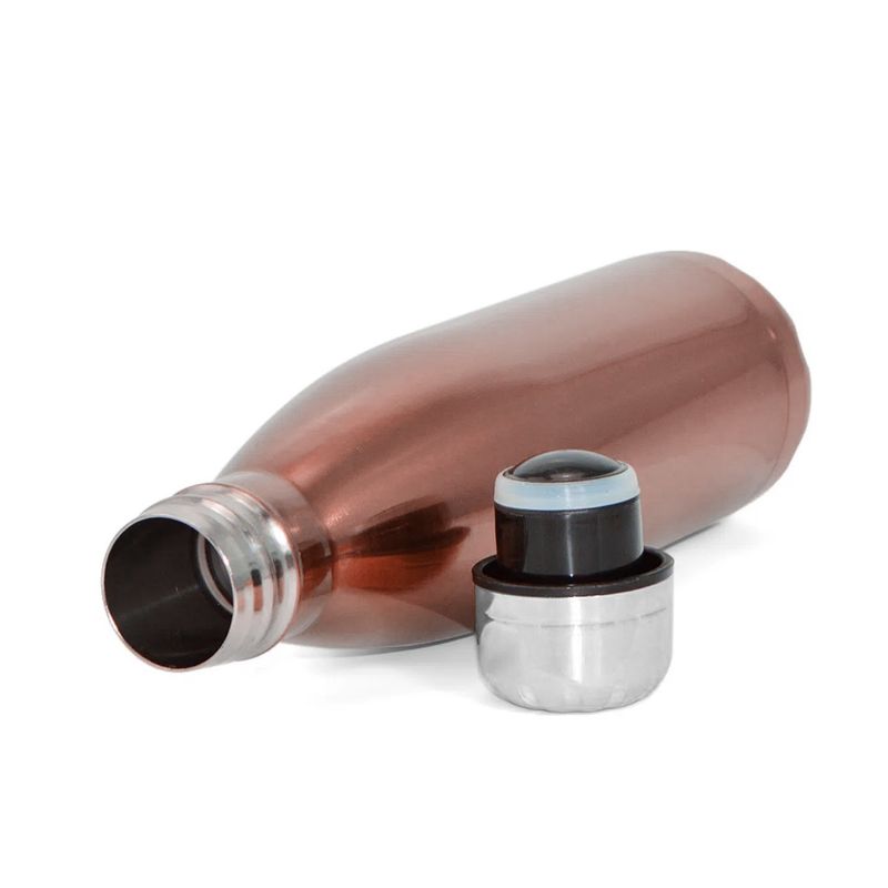 Para manter-se hidratado é mais prático ter sempre por perto uma garrafa, se ela for personalizada, fica muito melhor. Esta garrafa de aço inoxidável é muito mais resistente, pois tem parede dupla e mantém o líquido fresquinho, tem design ousado, na cor rose com tampa prata, ideal para academias e esportes em geral.