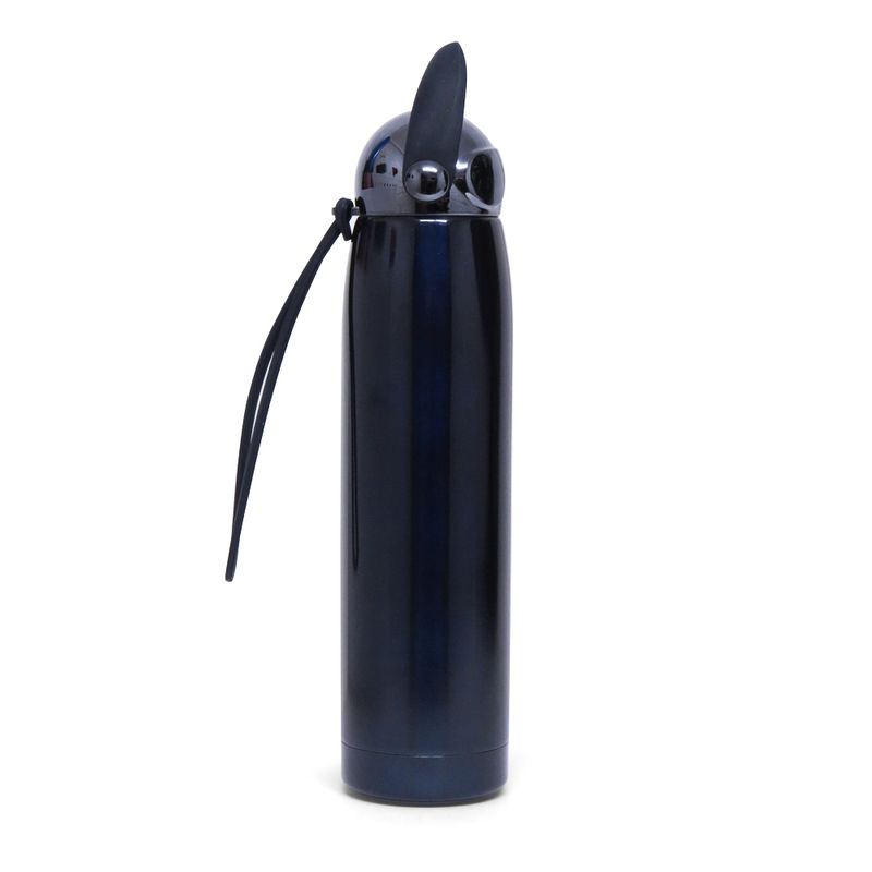 Para manter-se hidratado é mais prático ter sempre por perto uma garrafa, se ela for personalizada, fica muito melhor. Esta garrafa de aço inoxidável é muito mais resistente, pois tem parede dupla e mantém o líquido fresquinho, tem design ousado, na cor azul com tampa orelha de cachorrinho.
