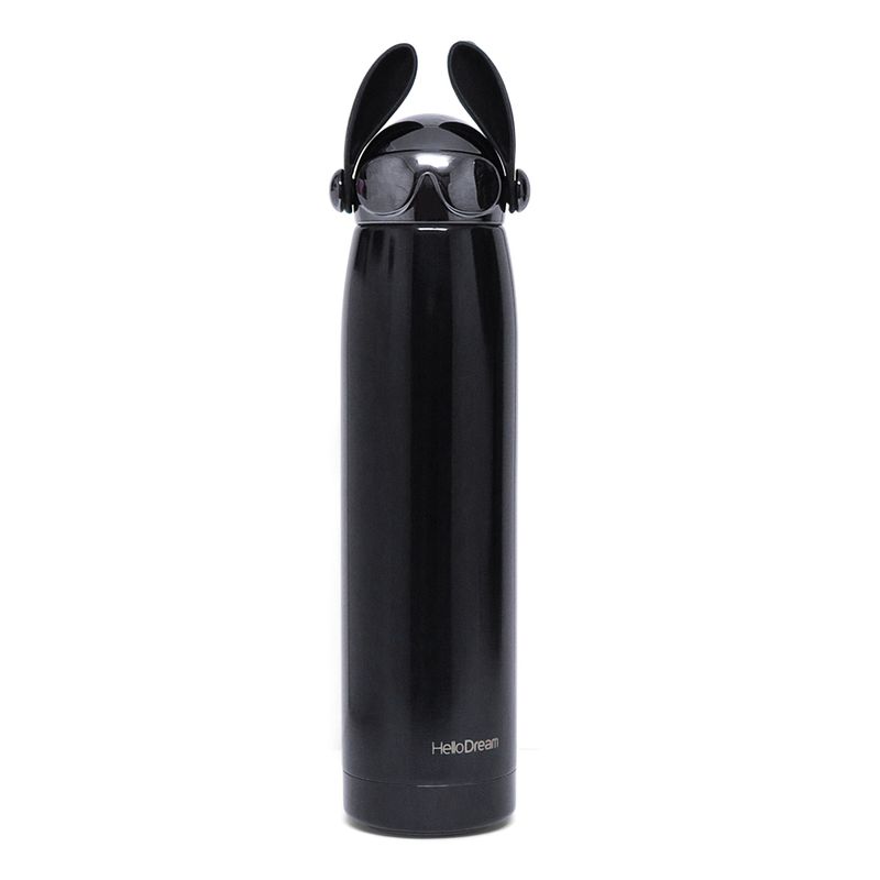 Garrafa Térmica Tampa Cachorrinho com Parede Dupla Preta - 320ml
