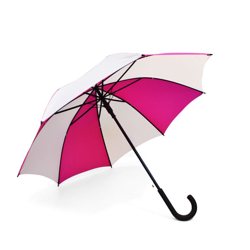 O Guarda-Chuva é produzido com material resistente possui cabo curvo emborrachado, haste dupla, sistema de abertura automática, tamanho de 100cm. O ideal é sublimar somente a parte branca do tecido.
