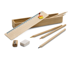 O Kit de Estojo Escolar de Madeira é a opção ideal para quem deseja oferecer um brinde criativo, funcional e pronto para personalização. Embalado em um elegante caixa de madeira , o kit contém 6 lápis de cor de madeira, um lápis de grafite, um apontador, uma borracha e uma régua de 20cm