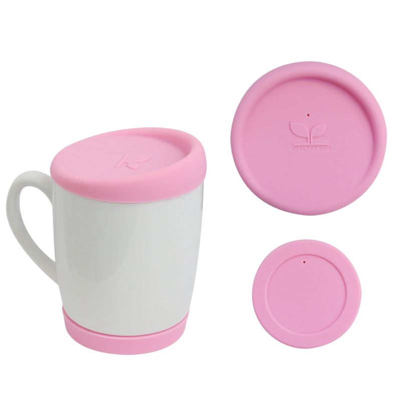 Kit Tampa e Base de Silicone para Canecas 300ml - Rosa