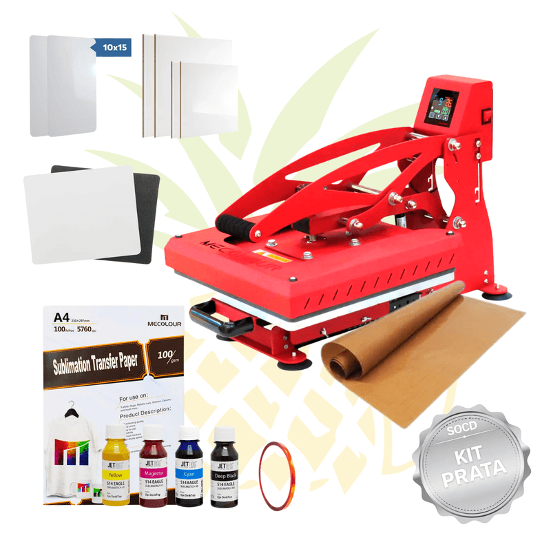 A Prensa Plana Mecolour 38x38cm com gaveta oferece mais segurança, ergonomia e produtividade, enquanto o conjunto de tintas, papel, manta e fita térmica garante qualidade na transferência. Os produtos sublimáveis inclusos permitem testes imediatos e criação de peças prontas para venda, agregando ainda mais valor ao kit.