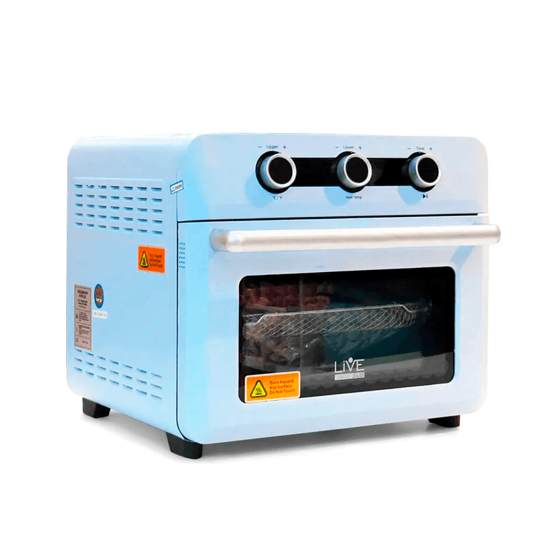 Mini Forno 3D de 25 litros na Cor Azul para Sublimação LIVE - 110vEstampe diversas canecas ao mesmo tempo. Com esse Forno 3D você consegue colocar tanto canecas, como taças de vidro para serem estampados.