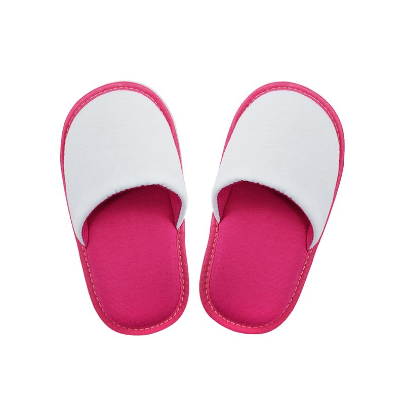 Exclusiva Pantufa branca com detalhe rosa tamanho infantil para sublimação, produto de alta qualidade, revestida com tecido 100% poliéster, ideal para presentear em datas comemorativas.