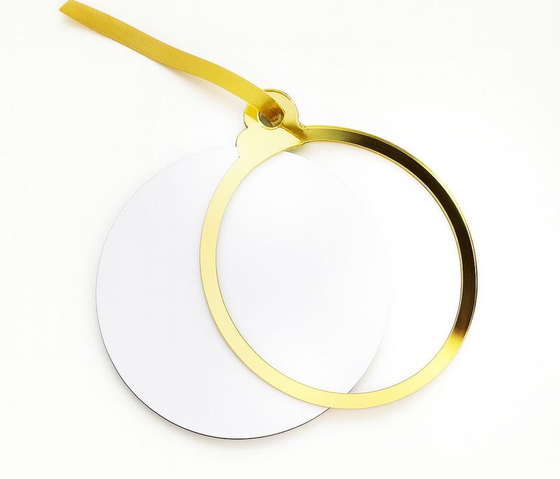 O Pingente de Bola para Árvore de Natal em MDF com Borda em Acrílico Dourado para Sublimação traz o equilíbrio perfeito entre o aconchego do MDF e o brilho elegante do acrílico dourado. Seu centro sublimável permite personalizar com artes exclusivas, nomes ou mensagens, transformando cada peça em um item único e cheio de significado.